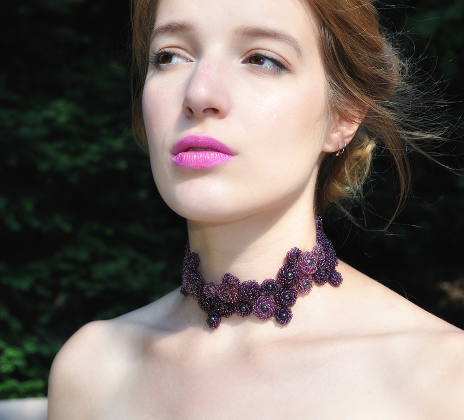 Dieses ist eines meiner Lieblingsstücke. Ich habe schon immer die Juwelen der königlichen Frauen in den frühen 1900er Jahren bewundert. Hier habe ich die Idee in Kristallen und Rocailles nachgebildet.